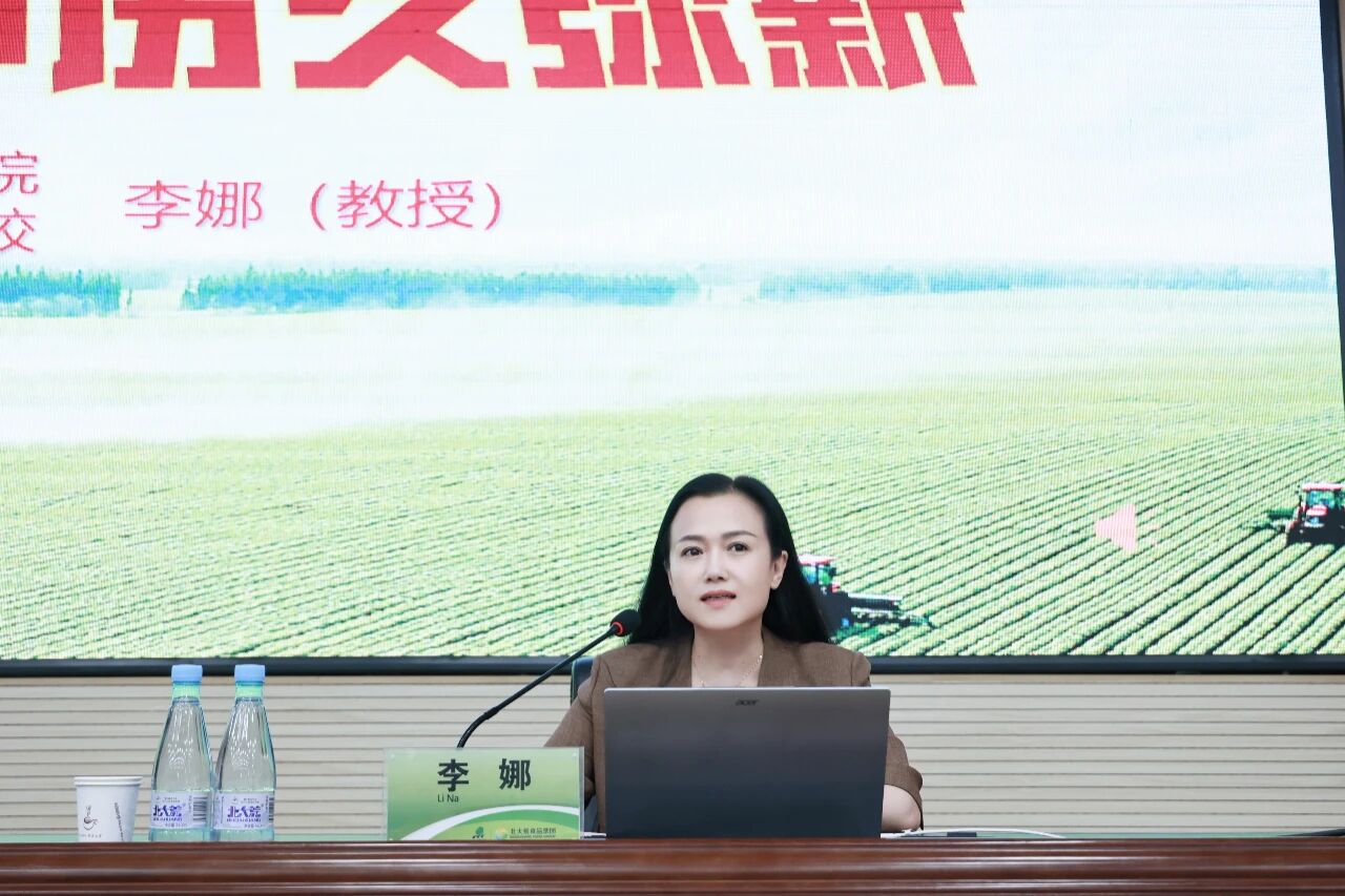 會(huì)議特邀黑龍江省農(nóng)墾管理干部學(xué)院、北大荒集團(tuán)黨校(教授)、黑龍江省委理論宣講師資庫(kù)成員、北大荒集團(tuán)宣講團(tuán)成員、北大荒集團(tuán)政策理論研究組成員、北大荒精神教學(xué)研究團(tuán)隊(duì)負(fù)責(zé)人李娜教授作主題宣講。